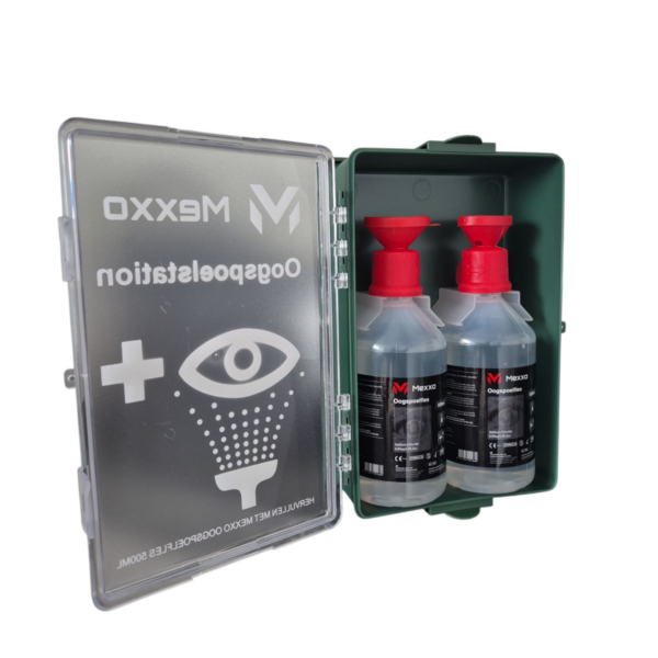 Zoek je een betrouwbare oogspoeloplossing voor jouw bedrijf? Kies dan voor het Mexxo oogspoelstation 2x 500 ml: snel, compleet en praktisch voor elke werkomgeving met risico op oogirritatie.